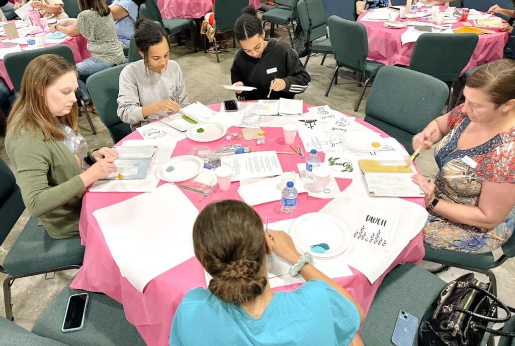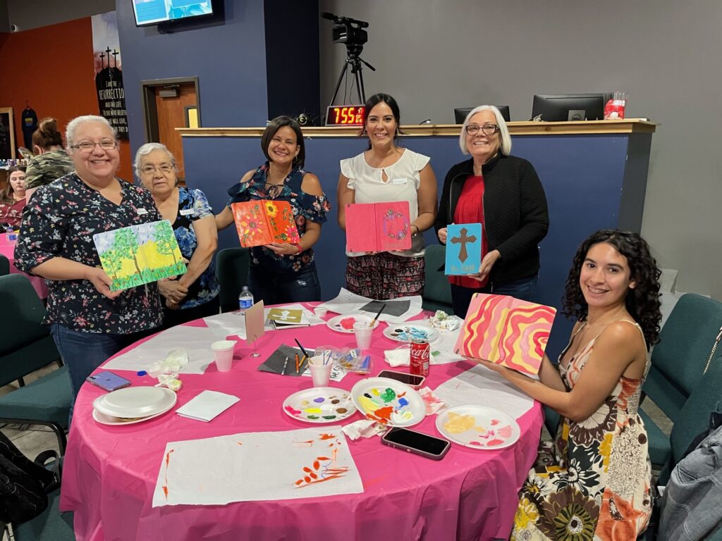 Thanks to all who attended our first Pizza and Painting Party for CrossRidge women’s ministry! Seventy-six women gathered on June 10 for an exciting evening of artistic expression, fellowship, and, of course, pizza.