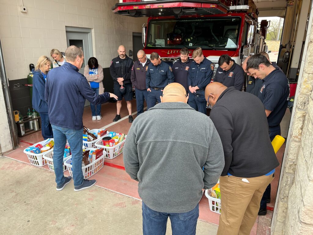 This was the eleventh time we’ve blessed the LEFD, and each time they express their heartfelt gratitude for the gifts and for the banners and notes from our children’s ministry. We’re blessed to bless our firefighters, to pray for them, and to honor them for the important work they do in serving our community.