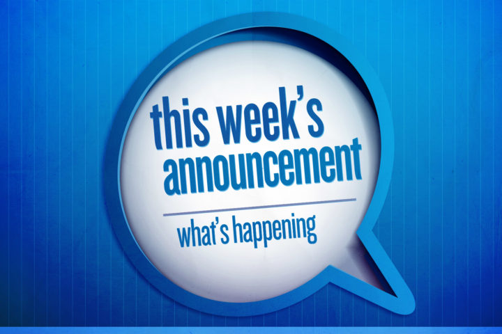 Wednesdays, starting on March 3, are back. See below for the schedule. Groups meet from 7:00 pm to 8:15 pm. March 3: Club 56 17: Student Night 24: Women’s Night and Kids’ Church 31: Men’s Night April 7: Student Night 14: Club 56 21: Women’s Night and Kids’ Church 28: Men’s Night May 5: Student Night and Club 56 12: Women’s Night 19: Men’s Night and Kids’ Church