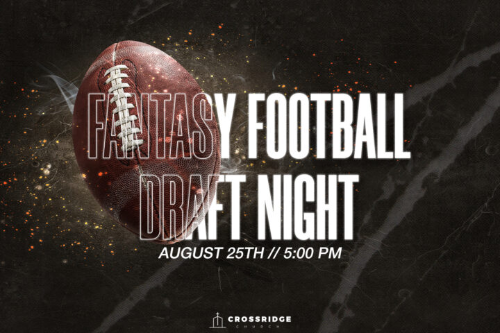 It’s been a long time coming, but fantasy football is making its long-awaited return to the halls of CrossRidge! Join us at 5:00 PM on August 25th for our Fantasy Football Draft Night! Led by Student Pastor and Official League Commissioner Coby McCormick, this is certified to be the best league you’ve ever been a part of. Sign up now using the link below to let us know you’re coming, and start getting those draft boards ready. See you there!