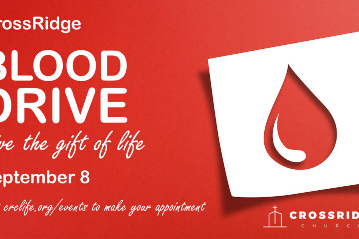 Help save a life and donate blood at CrossRidge Church on September 8. Every day, blood donors help patients of all ages: accident and burn victims, heart surgery and organ transplant patients, and those battling cancer. By donating blood, you can help victims and patients in need. Not only do you help save a life, but you also get a free mini-health assessment provided by a trained Red Cross staff member. Your blood pressure, hemoglobin, and pulse will be checked…