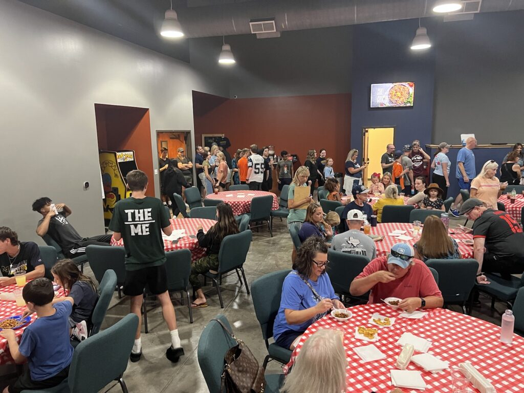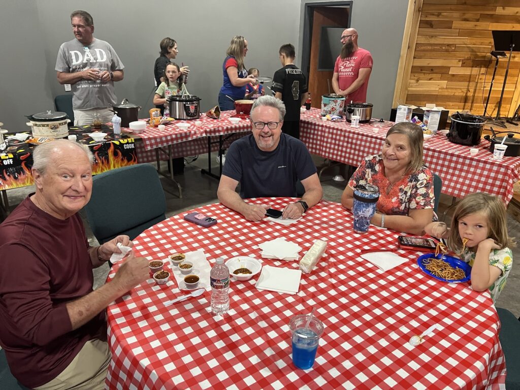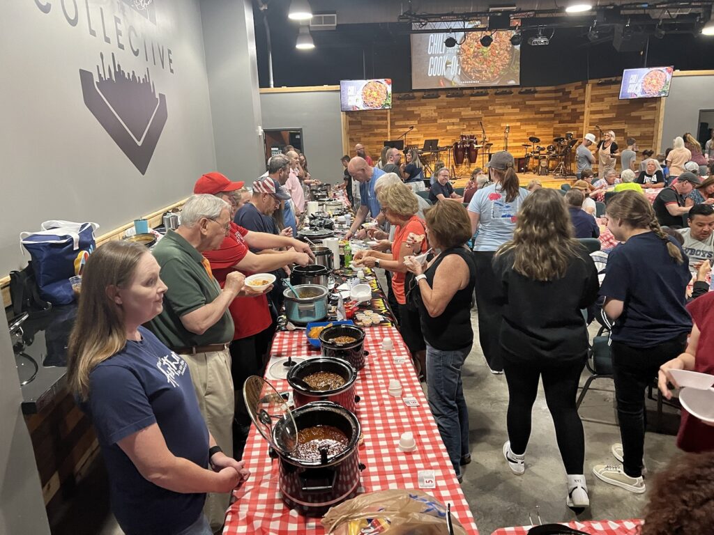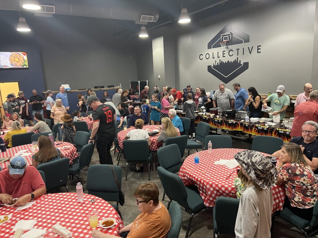 As the judges sampled the competing pots of chili, people enjoyed the chili and other dishes, including macaroni and cheese and spaghetti.