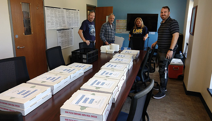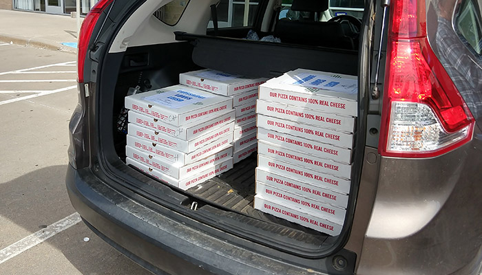 Thanks to Dollar Days and with the help of Joe’s Pizza and some of our church members, we were able to deliver 230 pizzas to 11 different campuses which had a total 895 teachers and staff.